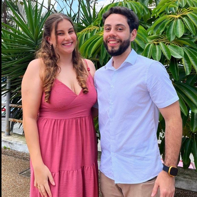 Em 2018, nos encontramos em um encontro de jovens com Cristo na nossa paróquia. Depois de um tempo sendo amigos, Adriano decidiu dar o primeiro passo e começamos a namorar em setembro daquele mesmo ano. Foram quatro anos de namoro repletos de sonhos, conquistas e momentos incríveis juntos. E então, em uma viagem para Porto Seguro, em 2023, em um mirante atrás de uma igrejinha, ficamos noivos. Agora, após cinco anos de namoro e quase três de noivado, estamos prontos para começar nossa jornada juntos como marido e mulher. Estamos ansiosos para compartilhar nossa felicidade e construir uma vida cheia de amor, risadas e aventuras juntos!